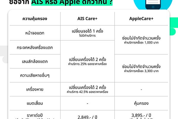 เปรียบเทียบ AIS Care+ และ AppleCare+